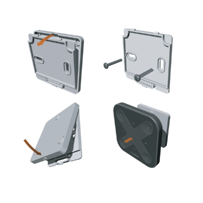 The switch can also be used on its own, as it is equipped with magnets to adhere to magnetic surfaces and can also be positioned anywhere in the room.
