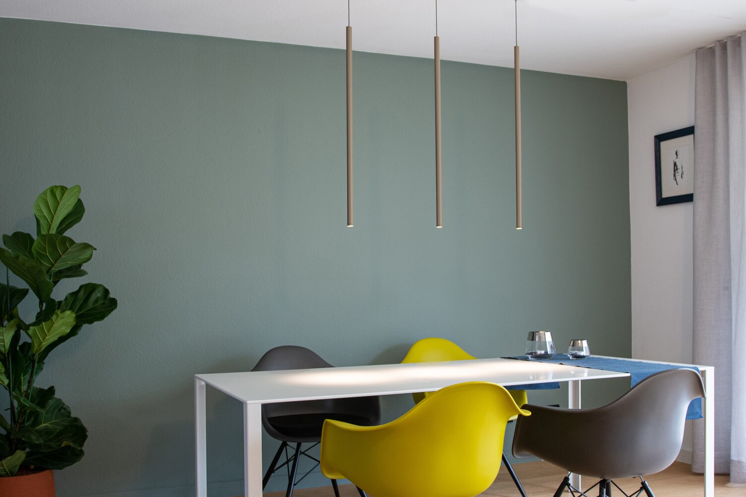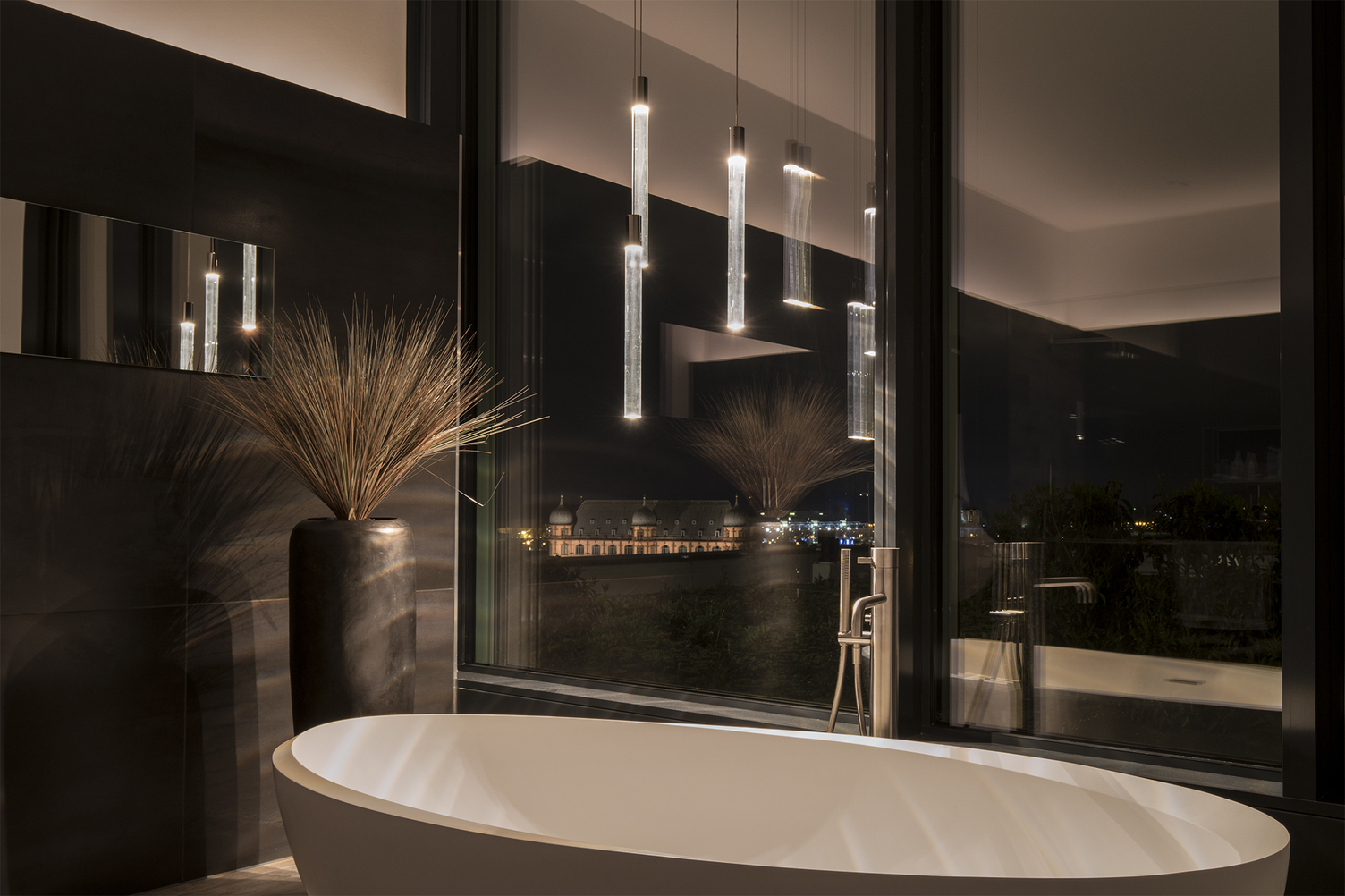 The FIO – a cylindrical pendant luminaire made of a solid, transparent acrylic glass rod with metal socket. As standard, the luminaire is available with a diameter of 40 mm in lengths of 500 mm and 750 mm.
