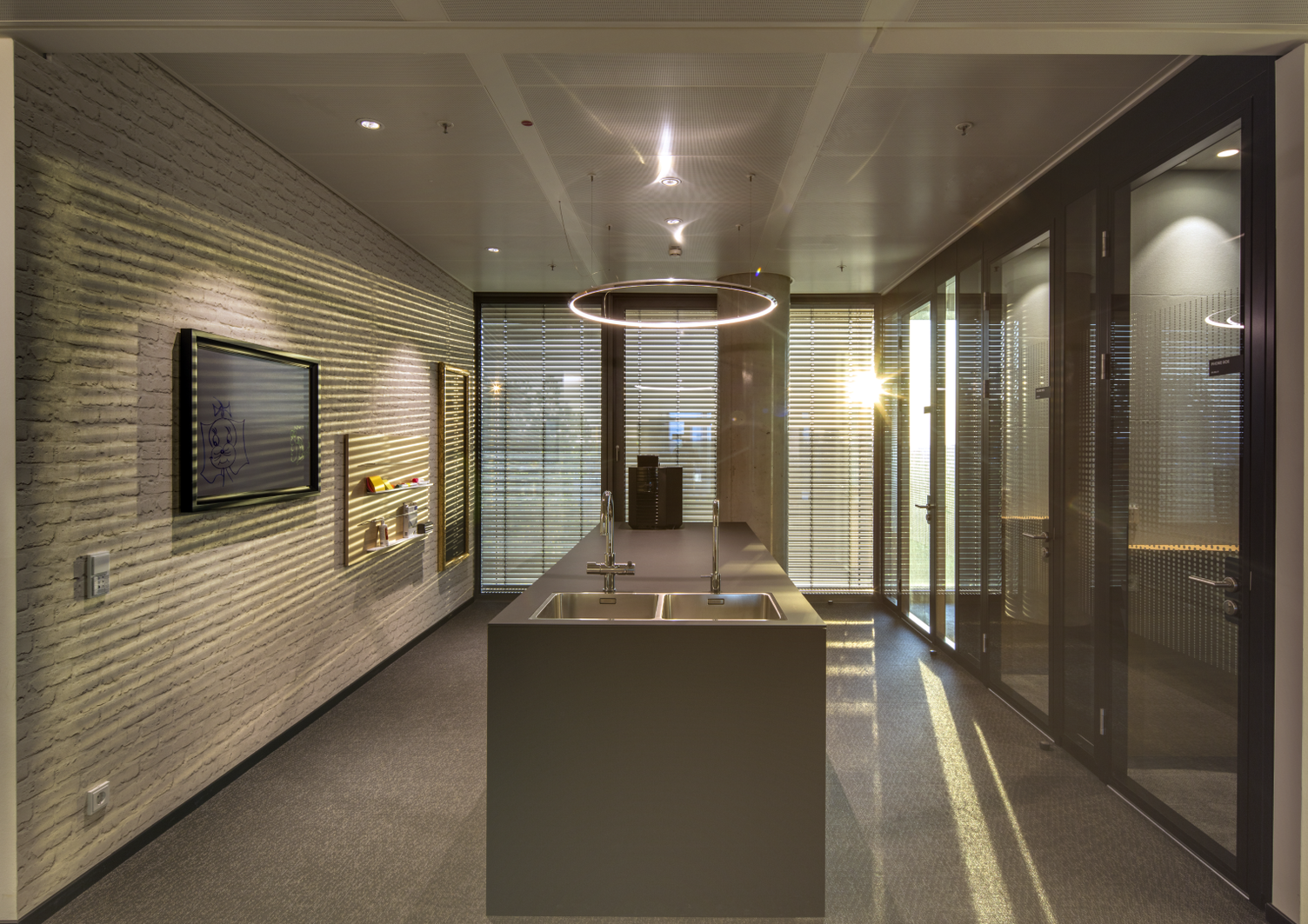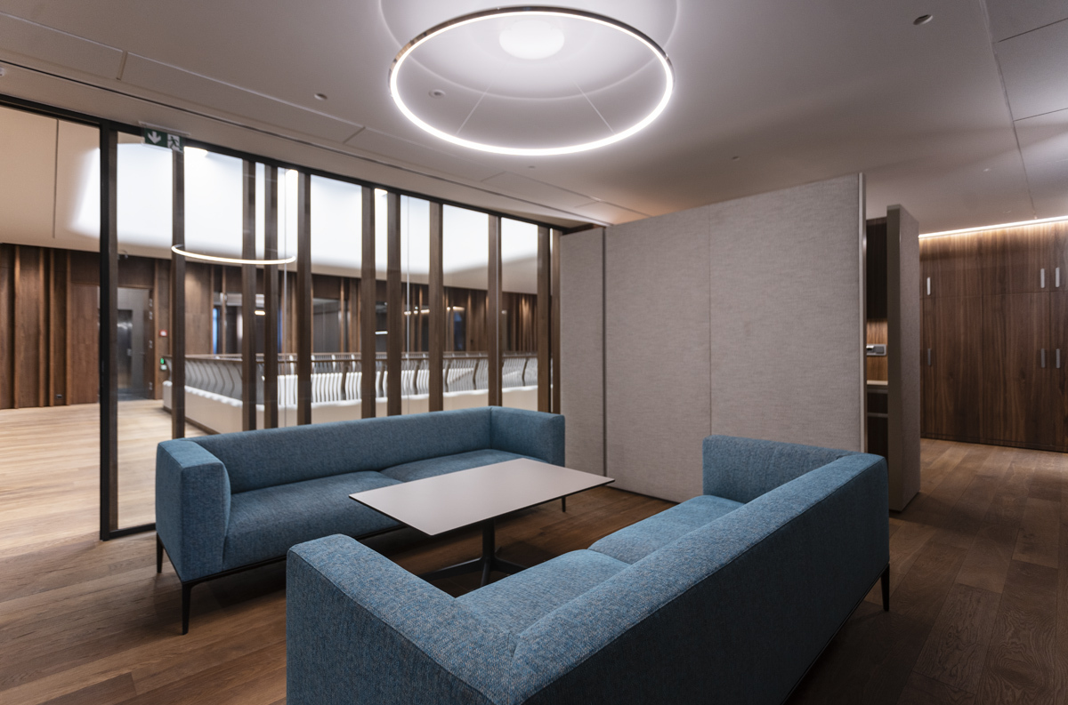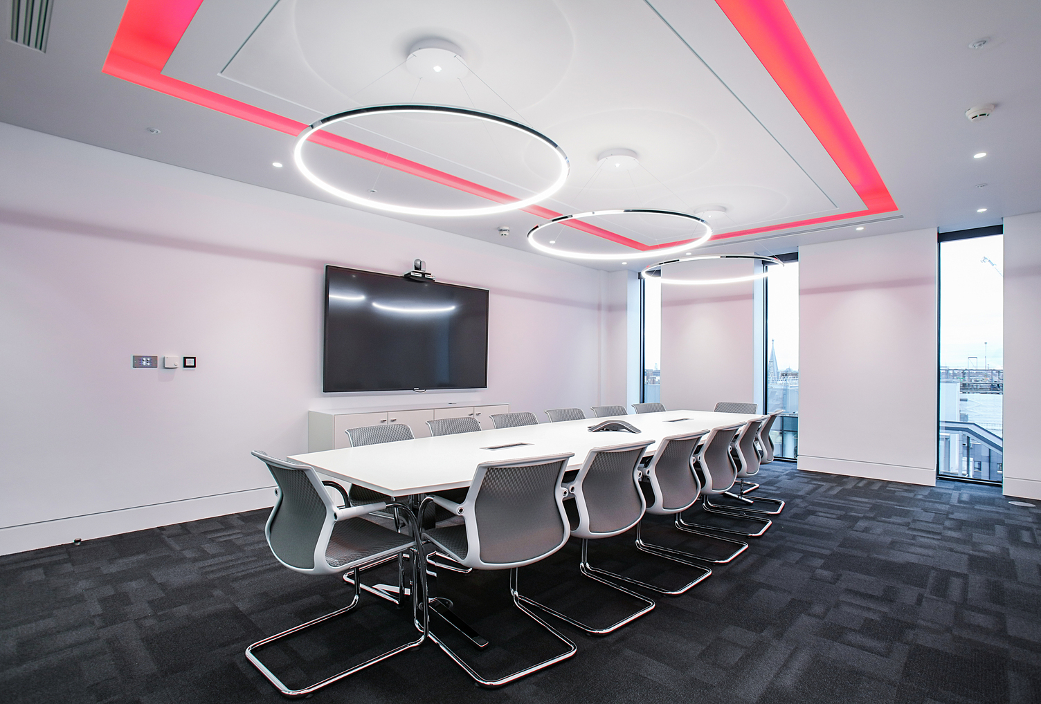 Ring-shaped aluminium profile, bent inwards by 45°, with inserted opal diffuser, CRI>90. It is available in 4 sizes from Ø 600 mm - Ø 1.55 m. Suitable for meeting tables, lounge areas, dining rooms, living rooms, shops and beyond.