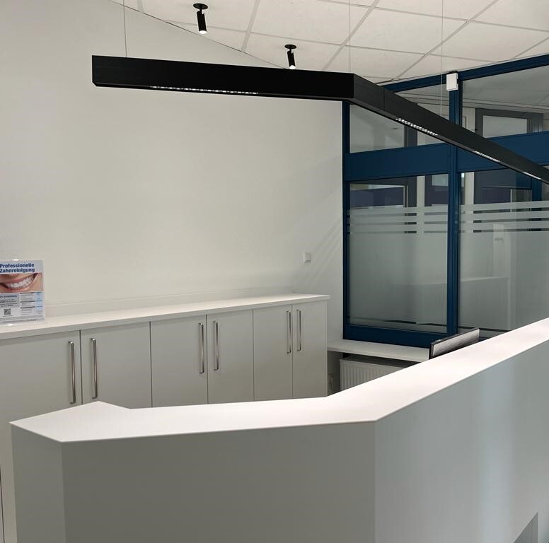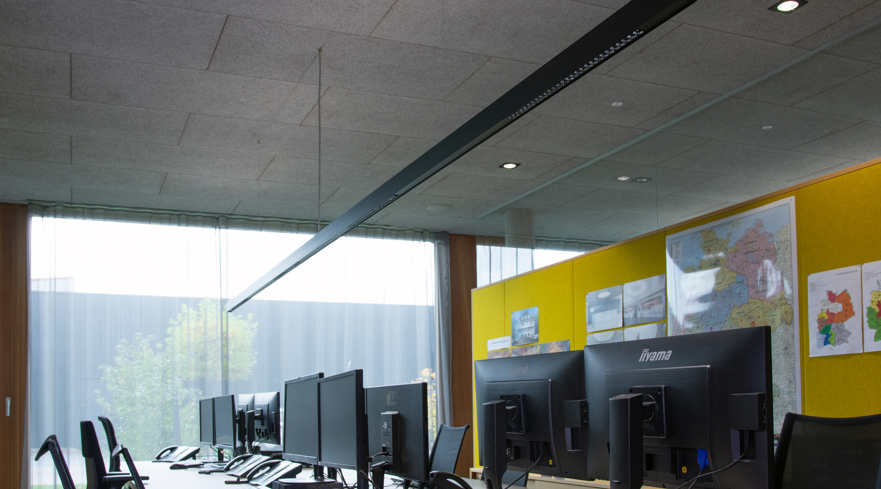 Luminaires in the PALADIO LENS series have highly efficient mini lens reflectors on the direct luminaire side with a 60° beam angle, UGR19, CRI>90, efficiency 80%. The lenses are integrated into the aluminium luminaire housing in groups in specific louvres. Additional ceiling illumination is provided by opal diffusers arranged in sections on the indirect luminaire side.