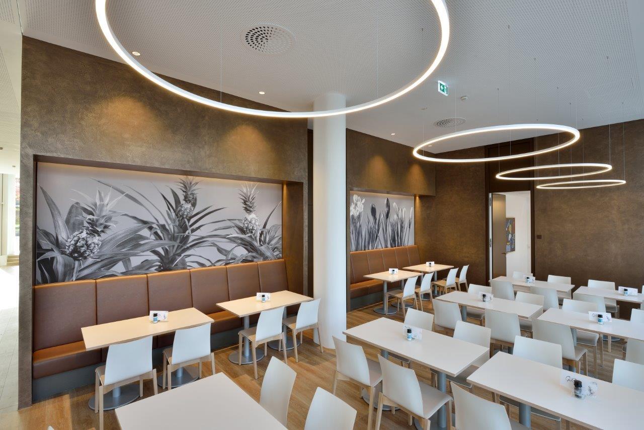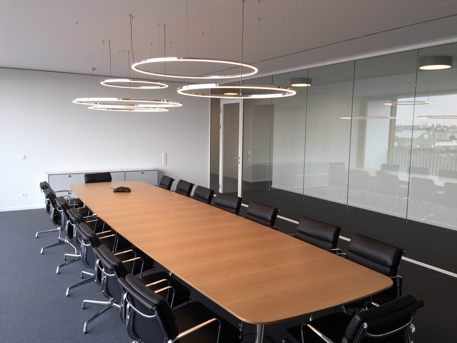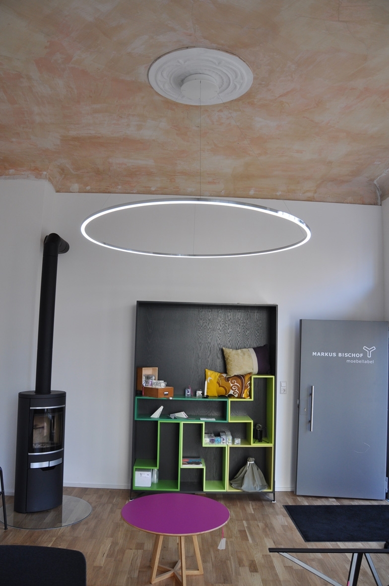 The elegance of the circle. SLIM DIRECT the slender SATTLER LED ring luminaire in the direct light version is available in diameters from Ø 380 mm up to Ø 1900 mm and fits into any room.