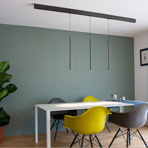 FIO is also available as an element of the SOLUZIONE lighting object, offering the possibility of creative lighting design in various contexts. The luminaire can also be combined with other rod pendant luminaires from SATTLER, such as the TIA or the slimmer FINO.