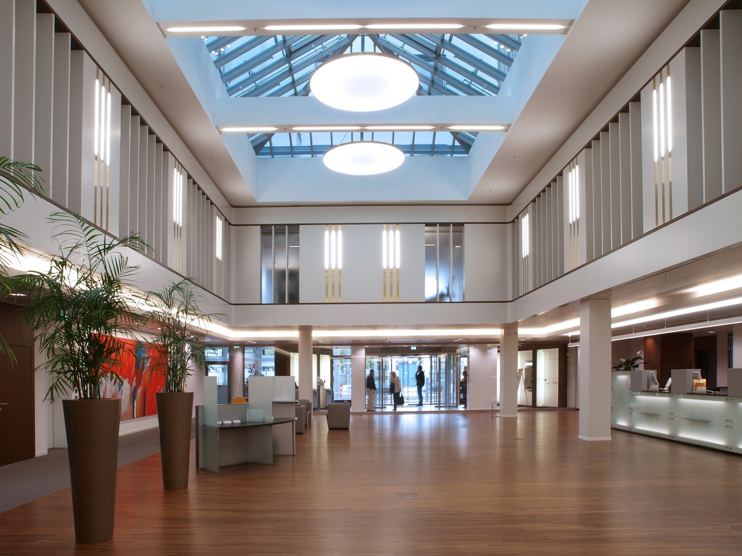 The HIGHMOON FLAT series from SATTLER impresses with its minimalist, flat design and is ideal for spacious room designs such as reception areas, lounges and conference rooms. The pendant luminaires are characterised by a round aluminium housing with a translucent film that emits light evenly.