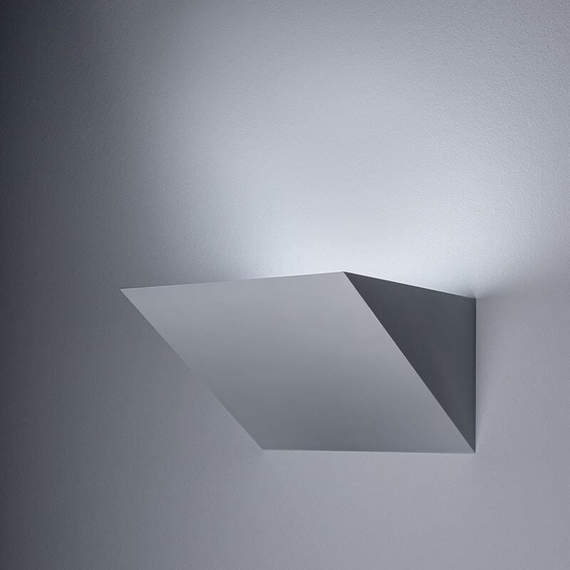 Wedge-shaped, minimalist LED wall light, indirect beam, W: 305 mm, H 175 mm, D 270 mm. With powerful LED, indirect light upwards on the wall.
