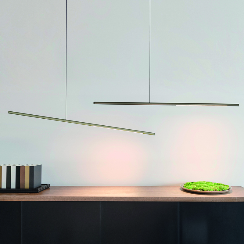 Cylindrical pendant luminaire with anodised surface in four colours, lengths 600, 800, 1240 and 1550mm, flexibly combinable.