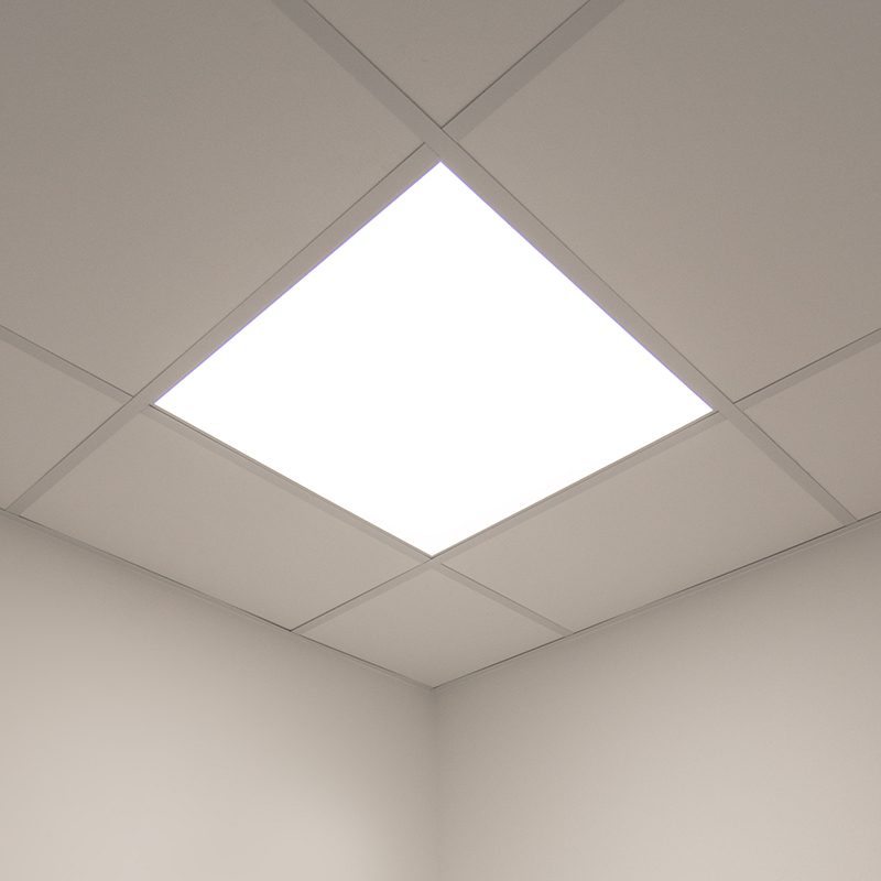 LED luminaire for suspended ceilings with a grid dimension of 600 or 625 mm. Uniform, glare-free and homogeneous illumination. Colour temperatures 3,000, 4,000 or 6,500 Kelvin.