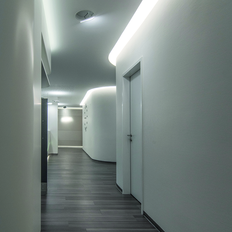 Ideal for indirect lighting in corridors and hallways, flexible lengths up to 8 m are possible. Individually dimmable via DALI.