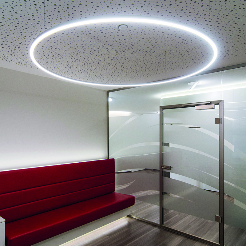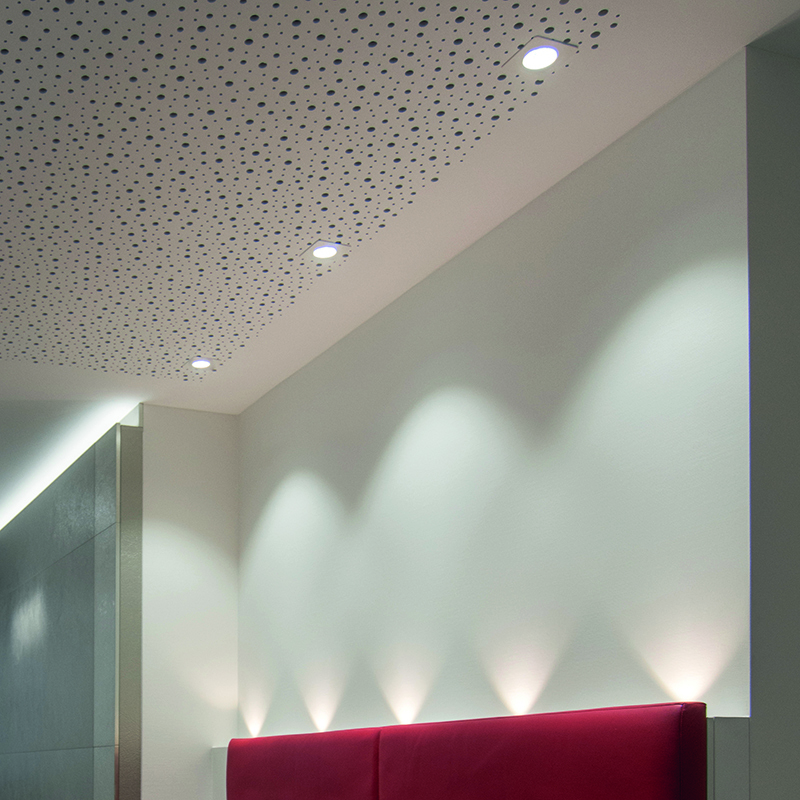 For large-area lighting solutions. Various shapes are possible, optionally also with micro-perforation to improve room acoustics.
