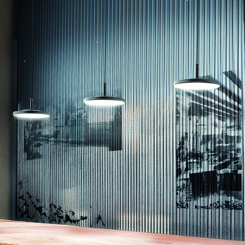 LED pendant luminaire that has won multiple awards for its design and function. Can be adjusted horizontally or at an angle by turning a weight on the side.