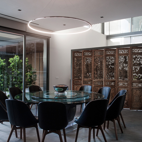 Today it is impossible to imagine life without ring lights. They can be found in many different places. They often decorate a foyer or hover above reception counters. They are also used in meeting rooms or hotel bars. They are also used in restaurants or to showcase products in sales rooms or at trade fairs. Ring lights decorate private living spaces. They have a harmonious and balancing effect above any table and direct the light where it is needed.