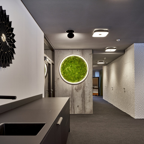 The SLIM luminaire series with its diameters of 380 mm to 1.9 m and various beam directions and a large selection of high-quality surface colours enables a harmonious combination to create a new lighting element, individually selected to suit the spatial possibilities.