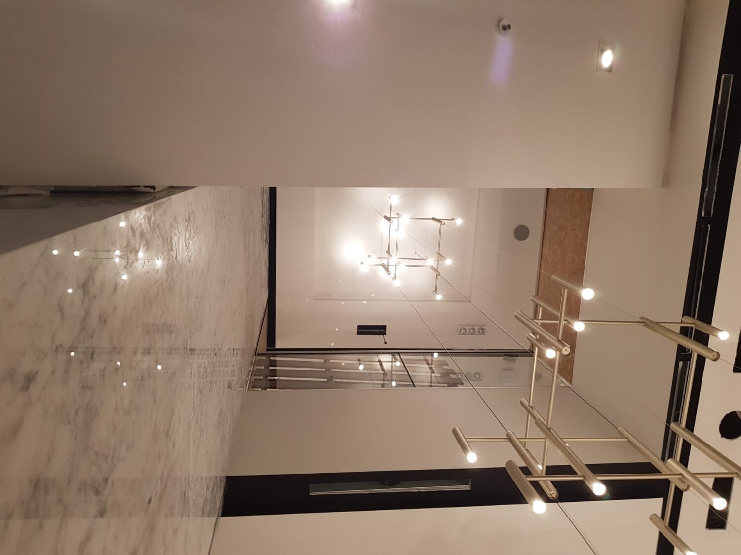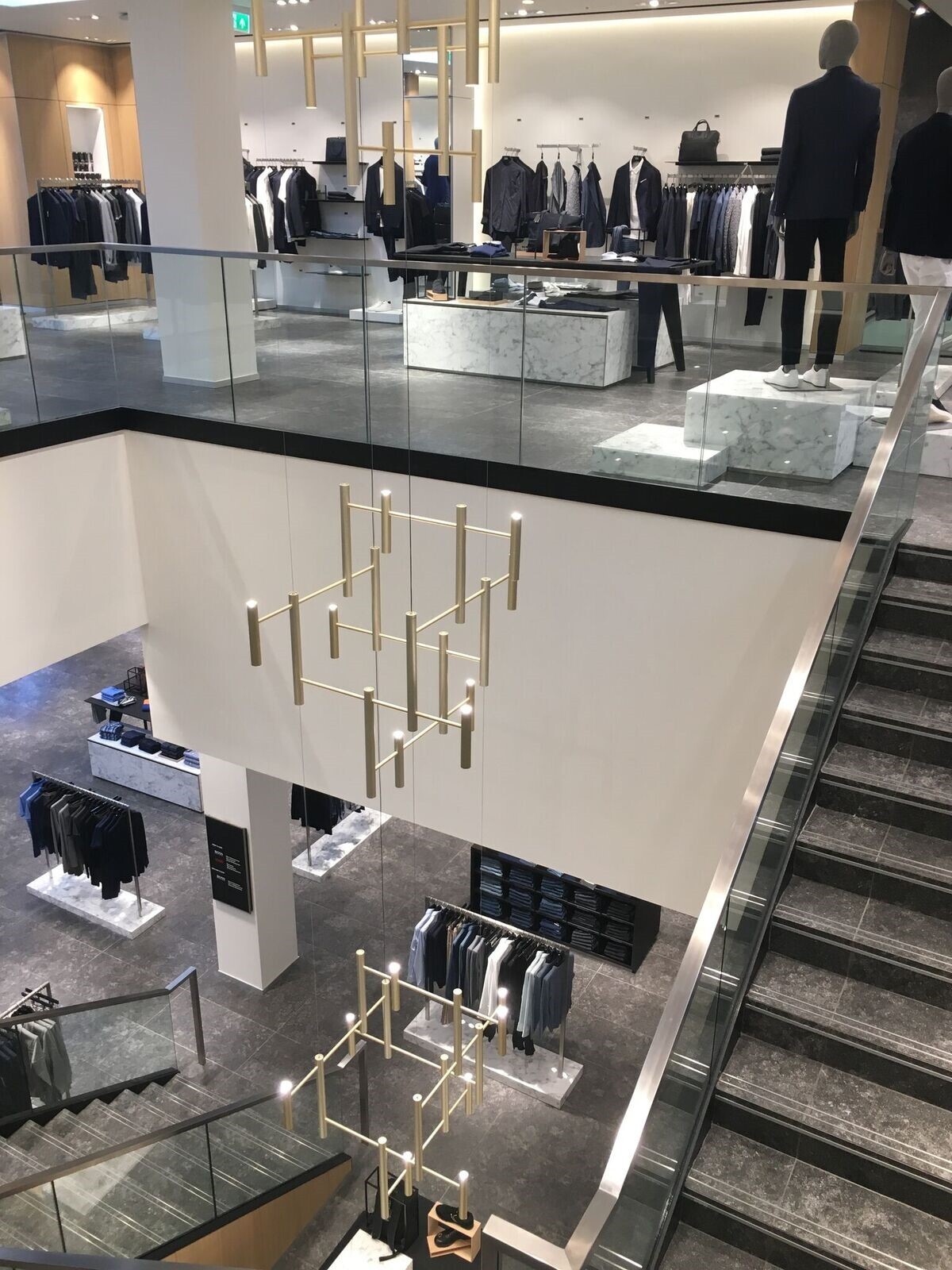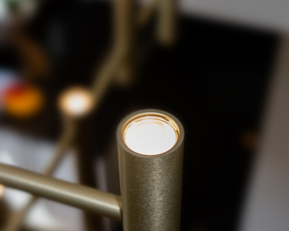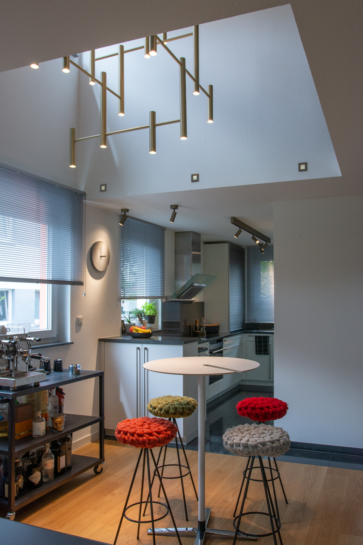EVOLUTION VERTICAL 1: Die EVOLUTION VERTICAL bildet sich durch unterschiedliche Rohrlängen und mehreren Querverbindungen auf mehreren Ebenen zu einem Gesamtkunstwerk aus. Die VERTICAL 1 besteht aus einem Element, eine Ebene, direkt leuchtend, CRI>90 mit 10 verschiedenen Spot-Lichtern auf verschiedenen Höhen. Ein weiterer moderner Kronleuchter ist das Ergebnis.