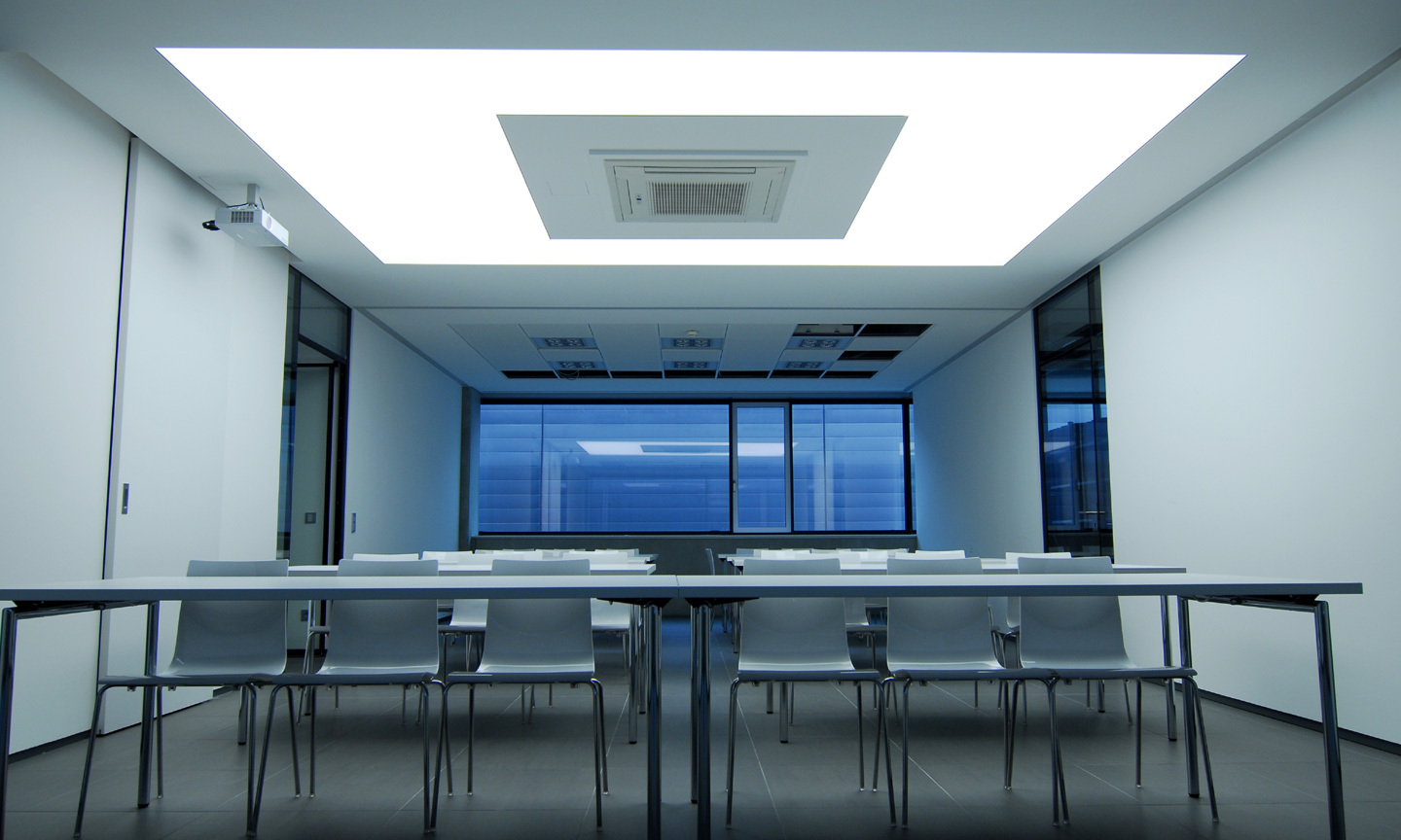Lichtdecken mit schallreduzierender Dämmung sind in flexiblen, projektabhängigen Größen erhältlich.