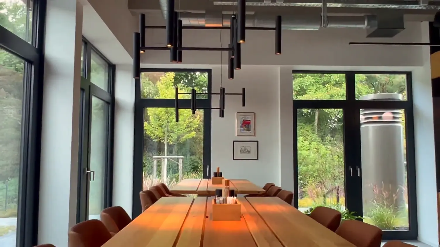 Tagsüber entsteht eine freundliche, klare Helligkeit, abends eine einladende Atmosphäre, die zum Verweilen einlädt. Die lineare Klarheit der Leuchten unterstützt die Geometrie des Raumes und stärkt das Gemeinschaftsgefühl.