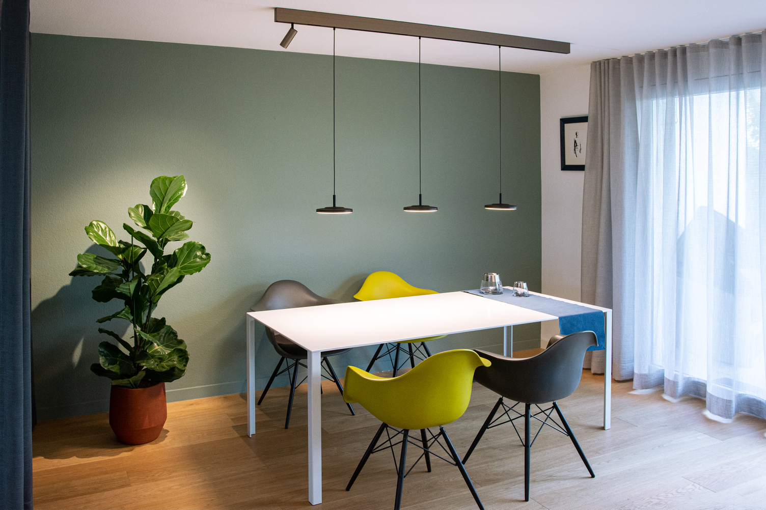 Als Einzel-Pendelleuchte oder in Kombination mehrerer Leuchten vielfältigste Anwendungen ermöglicht. Sehr gerne werden mehrere einzelne über Theken positioniert.