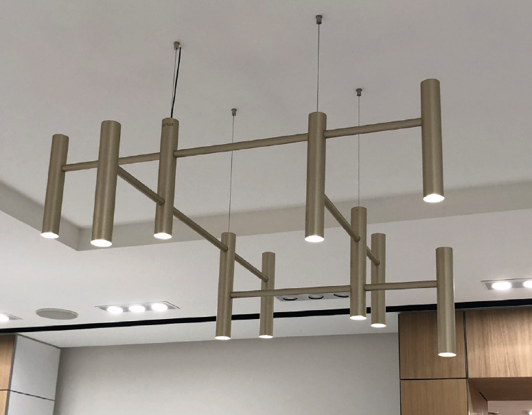 SATTLER EVOLUTION S | Die kleinste Pendelleuchte verbindender zylindrischer Elemente der EVOLUTION-Serie. EVOLUTION ist eine neuartige Pendelleuchte auf Basis eines cleveren Stecksystems: Das horizontale Grundelement bildet ein schmales Rohr, das die etwas dominanteren vertikalen zylindrischen Leuchtelemente derart miteinander verbindet, dass keine Schrauben sichtbar sind.