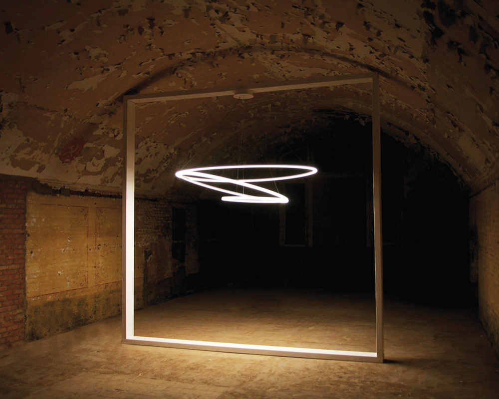 TOCCATA – Der etwas andersartige, moderne Kronleuchter. Auf den ersten Blick spiralenförmig, präsentiert sich die TOCCATA als faszinierendes Lichtobjekt, das durch die raffinierte Kombination von drei bis zu fünf LED-Ringleuchten aus jedem Blickwinkel heraus, immer wieder aufs Neue überrascht. Die Leuchte steht mit ihrer dynamischen Anordnung aus sich berührenden Ringen im ständigen Wechselspiel mit der umgebenden Architektur. Tangierende Kreise lassen die Bewegung des Lichts für den Betrachter sichtbar werden. Die besondere Kombination von nachhaltiger und handwerklicher Fertigung und modernster LED-Technologie unterstreichen die moderne Interpretation eines Kronleuchters.